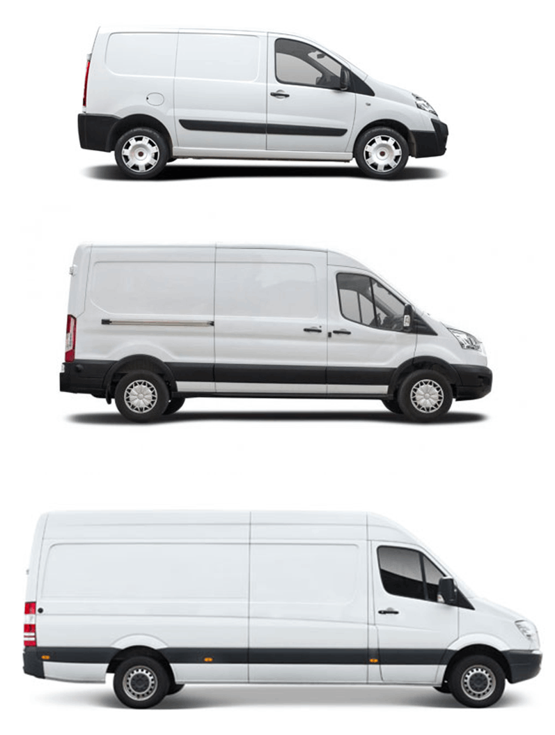 * From Small to Large vans. From 1 kilo to 1000 kilos, documents and pallets.